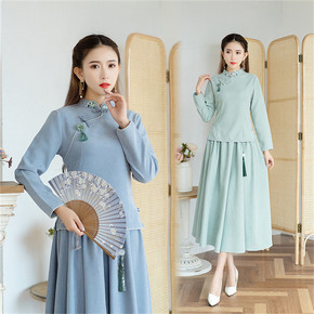 单/两件套 唐装女中国风冬装加厚民国风旗袍式汉服非...