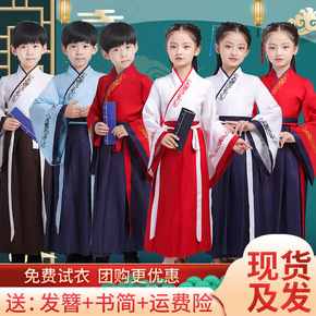 汉服女童小学生国学服男童中国风古装女书童服装男孩儿...