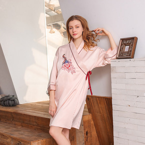 欧美风全棉睡衣春秋中款睡袍印花时尚休闲浴袍家居服睡...