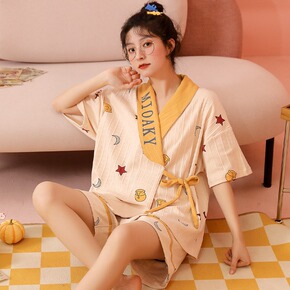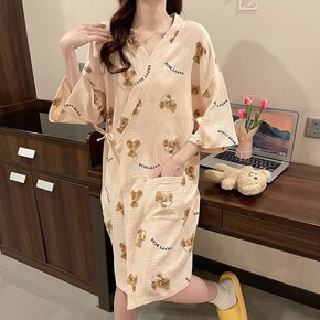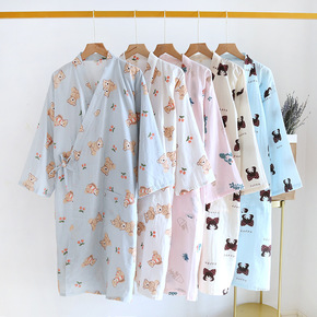 日系女式纯棉卡通系带和服棉纱睡衣清新系绳家居服汗蒸...