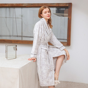 欧美浴袍秋冬睡袍女长款浴服高端酒店吸水速干纯棉时尚...