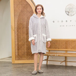 2022新款冬季睡袍珊瑚绒睡衣加绒加厚可外穿浴袍家...