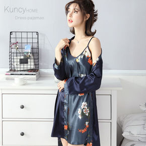 睡衣女夏季丝绸春秋季情侣吊带睡裙睡袍两件套装冰丝家...