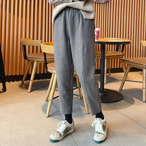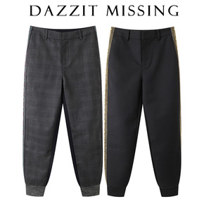 JNBY 2021冬季新款休闲裤拼接高腰舒适九分哈...
