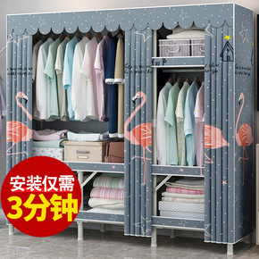 简易衣柜现代简约布衣柜钢管加粗加固出租房家用卧室收...