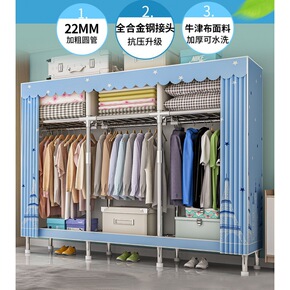 衣柜简易布衣柜钢管加粗加厚加固非实木大号双人单人衣...