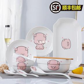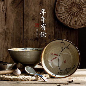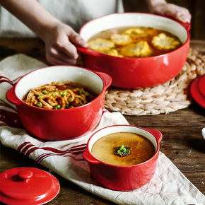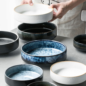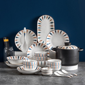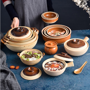 日式双色网红碗筷陶瓷碗盘双耳带盖砂锅餐具餐盘碗碟套...