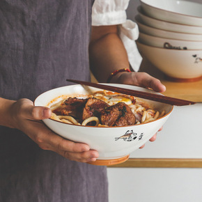 日式拉面碗单个 创意手绘陶瓷碗汤面碗 大号喇叭大碗...