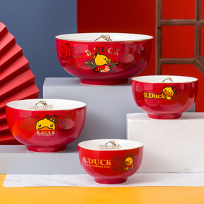 小黄鸭故宫宫廷文化碗陶瓷家用面碗单个米饭碗精致红色...
