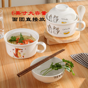 ezicok汤碗陶瓷带盖大碗汤面碗家用双耳碗蒸蛋碗...