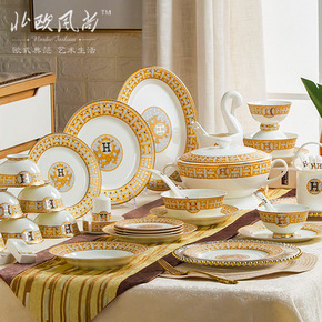 北欧轻奢碗碟套装家用网红金边陶瓷饭碗盘子组合创意碗...