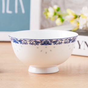 景德镇防烫高脚碗吃饭米饭碗单个碗骨瓷碗青花瓷碗套装...