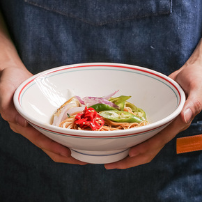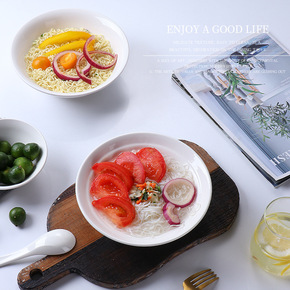 纯白色陶瓷斗碗沙拉碗米饭碗盛菜碗汤面碗汤粉碗喇叭碗...