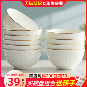 /10套装米饭碗碟家用吃喝饭碗单个餐具碗碗盘碗陶瓷...