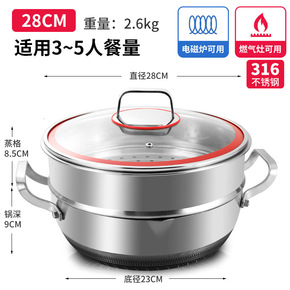 小笼包蒸锅不锈钢304二层家用汤锅24隔水蒸煮电磁...