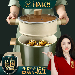 闪闪优品 蒸锅家用麦饭石不粘蒸笼双层蒸锅双耳汤锅加...
