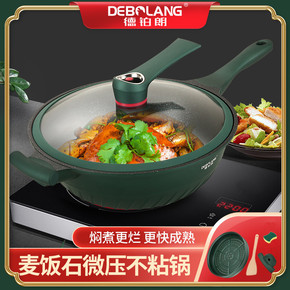 网红麦饭石炒锅不粘锅汤锅多功能微压炒菜锅双用电磁炉...