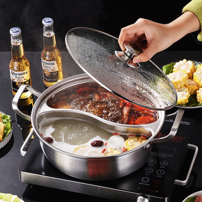 不锈钢小肥羊火锅盆 鸳鸯火锅清汤锅 双层汤蒸锅创意...