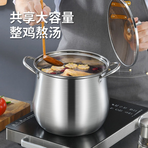 不锈钢高汤锅加厚加深鼓型特高锅防溢锅双耳礼品赠品定...