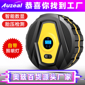 户外多功能便携式汽车打气泵智能数显充气泵带灯照明自...