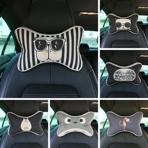 卡通猫创意汽车头枕护颈枕靠枕记忆棉颈椎骨头枕棉麻内...