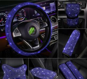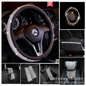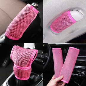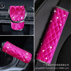 汽车宝石蓝烫钻手刹排挡套镶钻把套满钻安全带护肩套方...