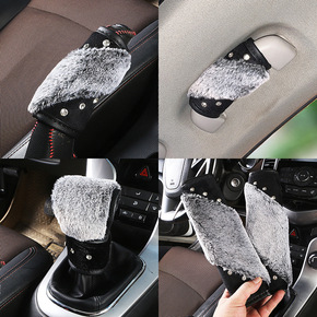 冬季新款汽车排挡套镶钻毛绒手刹套档杆套后视镜套安全...