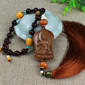 新款汽车挂件 配珠桃木雕刻观音像车挂 汽车内饰用品...
