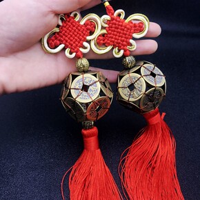 批发手工编织纯铜十帝钱路路通铜钱球中国结汽车挂件礼...