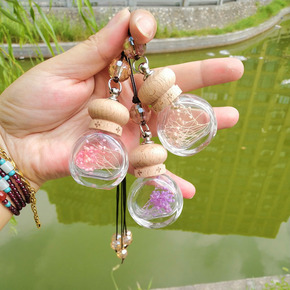 创意永生花挂件汽车香水空瓶车挂车内装饰品玻璃精油瓶...