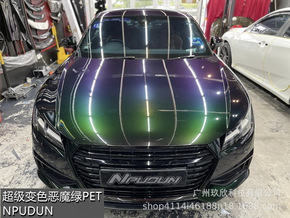 工厂批发超级变色恶魔绿PET全汽车身贴漆面保护改色...