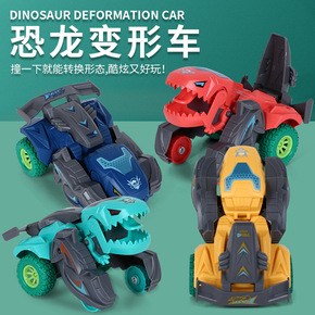 抖音同款碰撞变形恐龙玩具车儿童益智玩具车惯性玩具批...