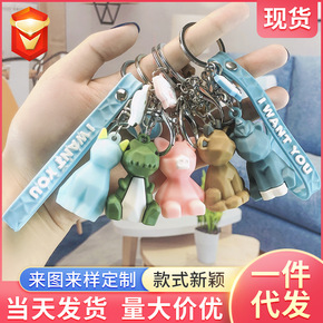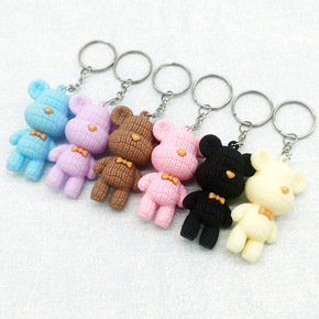 跨境卡通毛线熊钥匙扣毛线熊挂件PVC胶可爱公仔汽车...