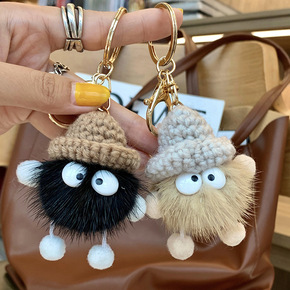 小煤球韩国ins水貂毛球可爱精灵包包挂饰高档汽车钥...