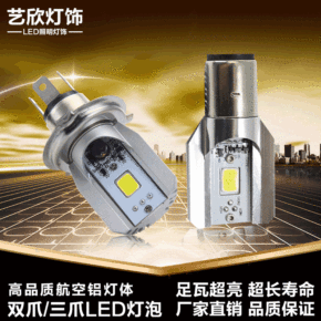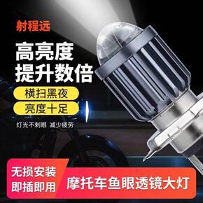 摩托车led前大灯H4三爪H6双色鱼眼带透镜远近一...