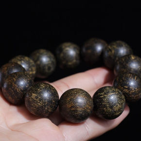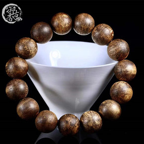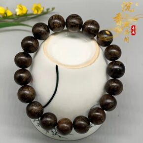 木珠手串16/18mm文莱黑油老料沉香手串男士木佛...