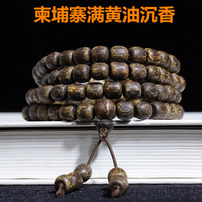 天然柬埔寨老料沉香手串熟结老料满纹沉香木手串念珠男...