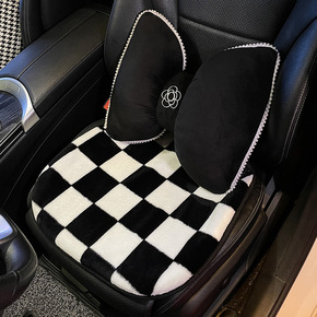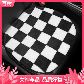 汽车坐垫黑白棋格毛绒车载座垫秋冬季简约保暖女士车用...