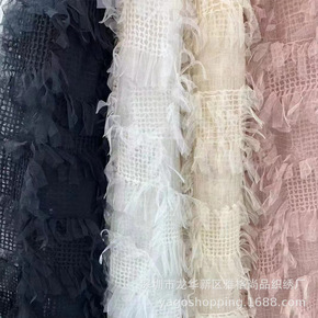 秋冬时装面料 蓬松毛毛须须雪纺须须方格绣花面料 现...