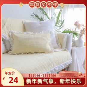 芳菲双面纯棉纯色沙发垫四季简约现代沙发套罩巾组合沙...