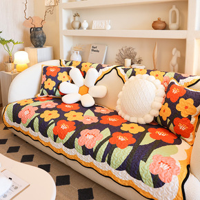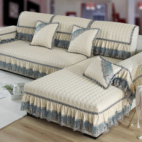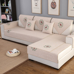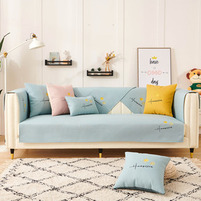 四季通用全棉刺绣沙发垫四季通用防滑纯色现代轻奢布艺...