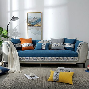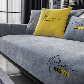 雪尼尔刺绣沙发垫坐垫四季中式北欧纯色简约时尚沙发罩...