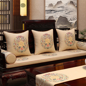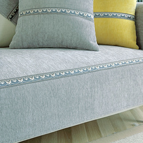 素色全棉麻绣花沙发垫柔软布艺防滑坐垫四季亚麻纯色沙...