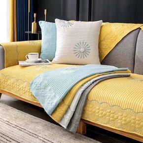 黄色沙发垫雪尼尔2021年新款四季通用防滑沙发垫子...