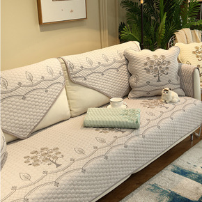 雪尼尔刺绣沙发垫坐垫四季通用北欧纯色简约时尚沙发罩...