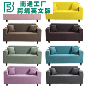 外贸跨境英文纯色摇粒绒沙发套全包玉米粒防滑沙发罩四...