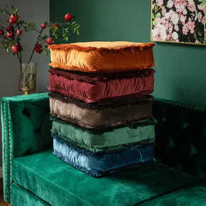 美式轻奢简约纯色坐垫椅垫丝绒方形加厚多功能流苏靠垫...