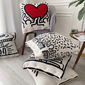 北欧轻奢风客厅沙发抱枕床头极简抽象创意爱心靠垫套床...