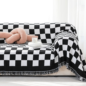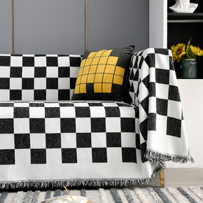 棋盘格沙发盖布ins风黑白格沙发巾全盖四季通用防猫...