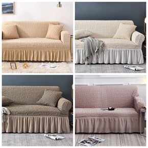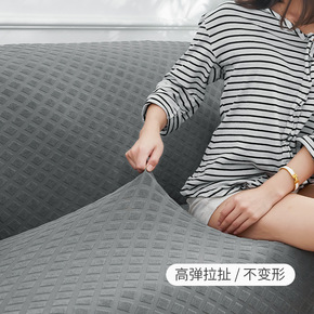 弹力菠萝格子沙发套全盖2人座纯色弹力沙发套配套2个...